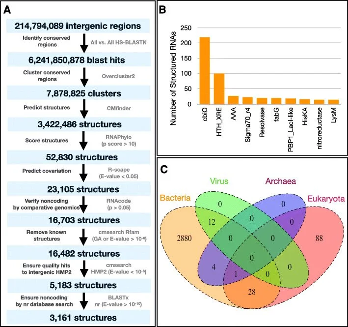 Comparative genomics identifies thousands of candidate structured RNAs in human microbiomes.